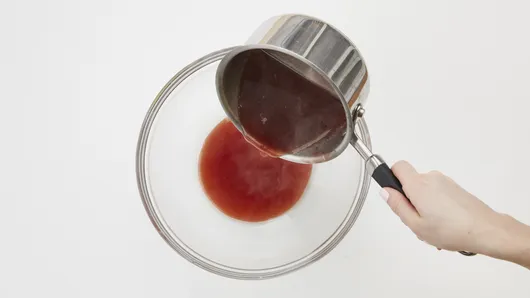 Step2Meanwhile, in 1-quart saucepan, heat jam over medium heat. In small bowl, mix water and gelatin. Stir into jam. Cook, stirring constantly, until mixture comes to a boil. Stir in lemon juice. Pour into large bowl; cool completely, about 45 minutes.