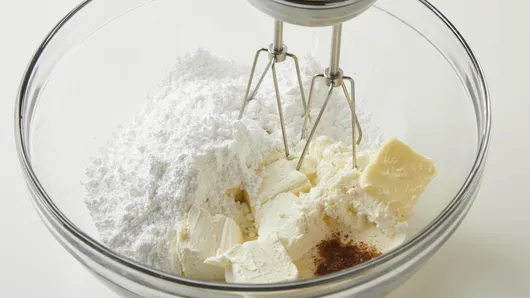 Step3In large bowl, beat cream cheese, butter, powdered sugar, whipping cream, rum extract and 1/2 teaspoon of the nutmeg with electric mixer on medium speed 1 to 2 minutes or until smooth and creamy.