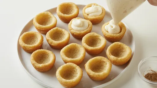 Step4Pipe or spoon cream cheese mixture into center of each cup. Sprinkle cups with remaining 1/4 teaspoon nutmeg. Store in covered airtight container in refrigerator up to 4 days.