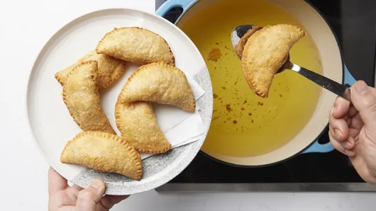 In a heavy deep skillet or Dutch oven, heat 2 to 3 inches of avocado oil to 350°F (use a thermometer). Fry empanadas in batches, 3 to 4 at a time, for 2 to 3 minutes per side or until golden brown and crisp. Transfer to a paper towel-lined plate to drain. Let cool slightly before serving.