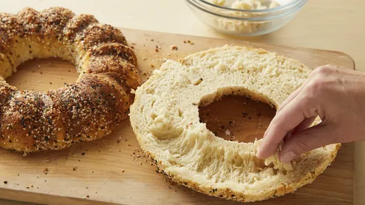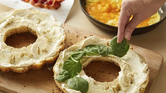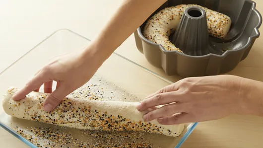 var configuration = {"title":"Everything Bagel Breakfast Bundtwich","introduction":"Forget breakfast casseroles, and make this showstopping sandwich the star of the menu at your next brunch party. The presentation of this bundtwich is seriously impressive-looking, but it’s practical too! Instead of making individual sandwiches for each of your guests, take it easy and make one crowd-sized sandwich that can be sliced into portions. And it tastes amazing, too! We start by baking French bread with everything bagel seasoning; then we fill it with cheesy eggs, crispy bacon, cream cheese spread and fresh spinach. It’s crazy awesome, and we guarantee you’ve never made anything like it before.","servingSize":"1 Serving","image":{"small":{"media":"(min-width: 0px)","src":"https://mojo.generalmills.com/api/public/content/xPz01djtEUazAajv7YYbRg_webp_base.webp?v=90ebc3bc\u0026t=e724eca7b3c24a8aaa6e089ed9e611fd"},"medium":{"media":"(min-width: 500px)","src":"https://mojo.generalmills.com/api/public/content/xPz01djtEUazAajv7YYbRg_webp_base.webp?v=90ebc3bc\u0026t=191ddcab8d1c415fa10fa00a14351227"},"large":{"media":"(min-width: 767px)","src":"https://mojo.generalmills.com/api/public/content/xPz01djtEUazAajv7YYbRg_webp_base.webp?v=90ebc3bc\u0026t=191ddcab8d1c415fa10fa00a14351227"},"alt":"Everything Bagel Breakfast Bundtwich"},"contributor":{"label":"By","name":"Pillsbury Kitchens","profileUrl":"/about-us","displayDate":{"label":"Updated","date":"Jan 16, 2019"}},"ingredientGroups":[{"ingredients":[{"quantity":"4","description":"tablespoons everything bagel seasoning blend "},{"quantity":"2","description":"cans (11 oz) refrigerated Pillsbury™ Original French Bread"},{"quantity":"1","description":"tablespoon butter"},{"quantity":"6","description":"eggs, beaten"},{"quantity":"3","description":"slices (0.75 oz each) Cheddar cheese"},{"quantity":"1","description":"package (8 oz) cream cheese, softened and stirred"},{"quantity":"8","description":"slices cooked bacon"},{"quantity":"1","description":"cup packed baby spinach leaves (from 5-oz package)"}]}],"steps":[{"description":"Heat oven to 350°F. Spray 12-cup fluted tube cake pan with cooking spray. Add half of the seasoning blend to rimmed baking pan or shallow dish. "},{"description":"Remove dough from one can; do not unroll. Roll outside of dough (except for the ends) in seasoning blend; place on one side of cake pan. Repeat for remaining seasoning and can of dough, placing dough on other side of cake pan. Pinch both ends of dough firmly together to seal into 1 ring. ","stepShotImageUrl":"//mojo.generalmills.com/api/public/content/mols5QfA0UmHbAINW8IUOg_webp_base.webp?v=e4669ea4\u0026t=51a43a57af4046789e5a7f20567b1195"},{"description":"Bake 33 to 38 minutes or until golden brown. Cool slightly, about 10 minutes. Remove bread from pan to cooling rack to cool completely, about 30 minutes. With serrated bread knife, carefully slice bread in half horizontally; place halves on cutting board. Pinch or tear bread from top and bottom halves, leaving about 1/2-inch shell; discard or save bread pieces for another use. ","stepShotImageUrl":"//mojo.generalmills.com/api/public/content/RqH33RzfLE6vsFusXwpltw_webp_base.webp?v=827e660f\u0026t=51a43a57af4046789e5a7f20567b1195"},{"description":"In 10-inch nonstick skillet, melt butter over medium heat; tilt pan to coat. Pour eggs into skillet. Cook until firm but still moist, stirring occasionally from outside edge to center, allowing uncooked egg to flow to bottom of skillet. Top eggs with Cheddar cheese. Remove from heat; cover skillet to melt cheese. ","stepShotImageUrl":"//mojo.generalmills.com/api/public/content/qq2-KzfnFkeZIMi1mNyqqQ_webp_base.webp?v=f08a329b\u0026t=51a43a57af4046789e5a7f20567b1195"},{"description":"Carefully spread cream cheese on cut sides of top and bottom of bread rings. Place bacon on top ring; press lightly into cream cheese. Place spinach on bottom ring; top evenly with egg and cheese. Carefully replace top bread ring; lightly press. With serrated bread knife, cut into 8 wedges to serve. ","stepShotImageUrl":"//mojo.generalmills.com/api/public/content/jUCI0iznEkOhxfVCD4Nk5Q_webp_base.webp?v=850f4a81\u0026t=51a43a57af4046789e5a7f20567b1195"}],"tips":[{"title":"","description":"Everything bagel seasoning can be purchased in a jar. However, it’s also easy to make at home! Mix 4 teaspoons each of dried chopped onion, dried minced garlic, poppy seed and sesame seed with 2 tablespoons kosher salt. Any leftover seasoning mix can be stored covered in small jar or resealable food-storage plastic bag to be used on everything from scrambled eggs to cooked vegetables.","category":"Recipe/Ingredient Facts","tipShots":[]},{"title":"","description":"Precooked, packaged bacon can be found next to the deli meats in the refrigerated section of the grocery store.\n\nPrecooked bacon is convenient in this recipe because it eliminates the mess of having to cook your own bacon. However, you can cook your own if you’d like, or use leftover cooked bacon.","category":"Recipe/Ingredient Facts","tipShots":[]},{"title":"","description":"For a plain-bagel version of this breakfast sandwich, omit the seasoning blend coating.","category":"Variation","tipShots":[]},{"title":"","description":"Kitchen Tested - 10/2018","category":"Kitchen Tested","tipShots":[]}],"kitchenTips":[{"title":"","description":"Everything bagel seasoning can be purchased in a jar. However, it’s also easy to make at home! Mix 4 teaspoons each of dried chopped onion, dried minced garlic, poppy seed and sesame seed with 2 tablespoons kosher salt. Any leftover seasoning mix can be stored covered in small jar or resealable food-storage plastic bag to be used on everything from scrambled eggs to cooked vegetables.","category":"Recipe/Ingredient Facts","tipShots":[]},{"title":"","description":"Precooked, packaged bacon can be found next to the deli meats in the refrigerated section of the grocery store.\n\nPrecooked bacon is convenient in this re