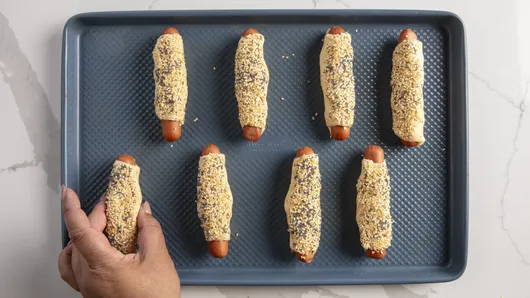 Hot Dogs: The star of the dish, hot dogs add a juicy, savory bite that pairs well with flaky crescent dough and everything bagel-inspired seasonings.