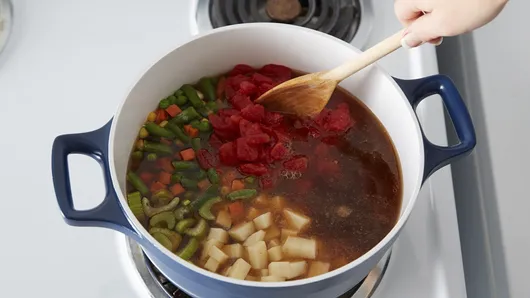 Add remaining ingredients; mix well. Heat to boiling. Reduce heat to medium-low; cover and simmer 18 to 20 minutes, stirring occasionally, until vegetables are tender.