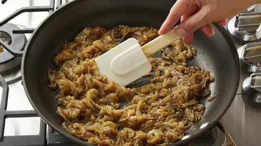 In 12-inch nonstick skillet, heat 1/4 cup butter over medium-high heat. Add onions, thyme, salt and pepper. Cook 11 to 12 minutes, stirring occasionally, until onions are tender. Reduce heat to medium; cook 10 to 12 minutes, stirring occasionally, until onions are starting to brown.