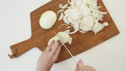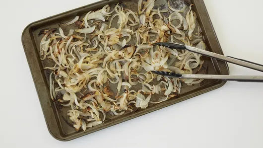 Step1Heat oven to 425°F. Cut onions in half, and cut into 1/4-inch slices.
