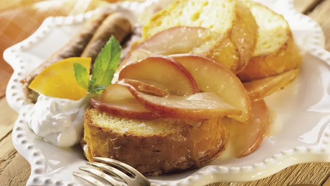 Step2Dip bread slices into egg mixture, coating both sides well. Place in ungreased 11x7-inch (2-quart) glass baking dish, place bread slices. Pour remaining egg mixture over bread slices. Let stand at room temperature 10 minutes.