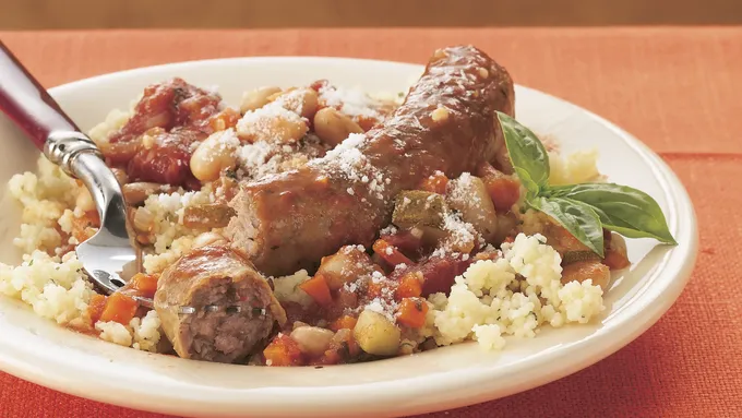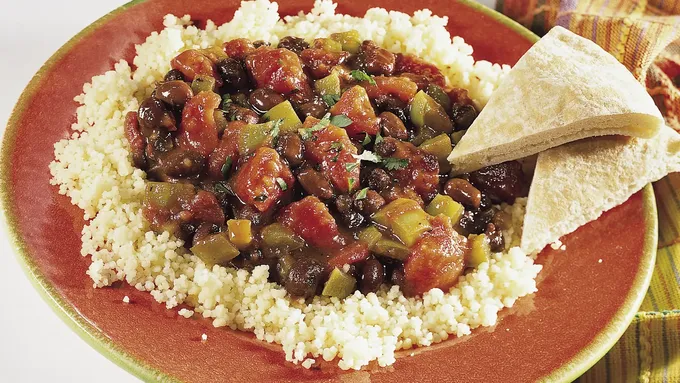 Step3Add tomatoes, salsa and olives; mix well. Bring to a boil. Reduce heat to low; cover and simmer 3 to 5 minutes or until thoroughly heated and sauce is of desired consistency, stirring occasionally. Serve over couscous.