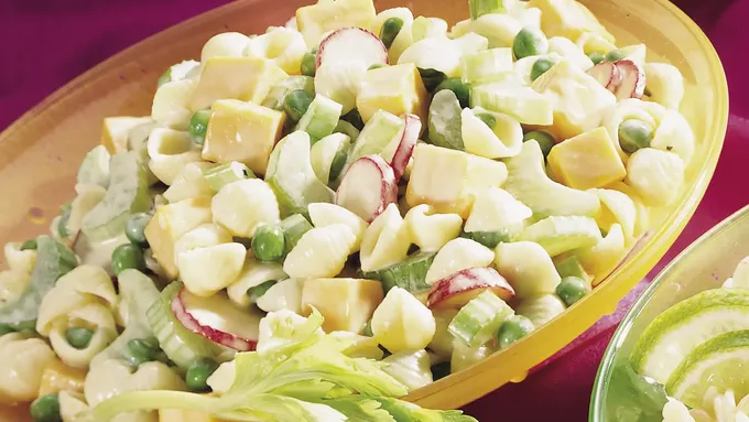 Step1Cook macaroni to desired doneness as directed on package. Drain; rinse with cold water to cool.