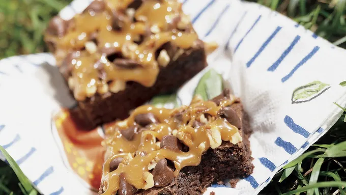 Enjoy these nutty brownies made with chocolate and candied fruits - a perfect baked dessert.