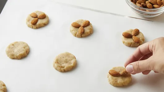 var configuration = {"title":"German Almond Cookies","introduction":"These German Almond Cookies have centuries of history behind them, but their flavor is timeless. Also known as Bethmännchen, each cookie is made with almond paste and topped with three almonds for a nutty flavor that complements any Christmas cookie platter.","servingSize":"1 Cookie","image":{"small":{"media":"(min-width: 0px)","src":"https://mojo.generalmills.com/api/public/content/pdqaKBuUZU2jx-hOxc3UWg_webp_base.webp?v=1f62f2c9\u0026t=e724eca7b3c24a8aaa6e089ed9e611fd"},"medium":{"media":"(min-width: 500px)","src":"https://mojo.generalmills.com/api/public/content/pdqaKBuUZU2jx-hOxc3UWg_webp_base.webp?v=1f62f2c9\u0026t=191ddcab8d1c415fa10fa00a14351227"},"large":{"media":"(min-width: 767px)","src":"https://mojo.generalmills.com/api/public/content/pdqaKBuUZU2jx-hOxc3UWg_webp_base.webp?v=1f62f2c9\u0026t=191ddcab8d1c415fa10fa00a14351227"},"alt":"German Almond Cookies"},"contributor":{"label":"By","name":"Pillsbury Kitchens","profileUrl":"/about-us","displayDate":{"label":"Updated","date":"Sep 21, 2020"}},"ingredientGroups":[{"ingredients":[{"quantity":"1/2","description":"cup whole natural almonds"},{"quantity":"1","description":"roll (16.5 oz) refrigerated Pillsbury™ Sugar Cookie Dough","productLink":"/products/cookies/refrigerated-cookies/sugar-cookies"},{"quantity":"1/4","description":"cup almond paste (from 7-oz package)"},{"quantity":"1/3","description":"cup all-purpose flour"},{"quantity":"108","description":"whole natural almonds (about 3/4 cup)"},{"quantity":"1","description":"tablespoon powdered sugar"}]}],"steps":[{"description":"Heat oven to 350°F. Line large cookie sheets with cooking parchment paper. Place 1/2 cup almonds in food processor. Cover; process with on-off pulses until finely ground."},{"description":"In medium bowl, break up cookie dough and almond paste. Stir or knead in flour and ground almonds until well mixed. (DO NOT EAT RAW COOKIE DOUGH AFTER COMBINING WITH FLOUR.) Shape dough into 36 (1 1/4-inch) balls. Place 2 inches apart on cookie sheets. With fingers, flatten each ball to 1 1/2-inch round. Firmly press 3 almonds with pointed ends touching in center of each cookie round.","stepShotImageUrl":"//mojo.generalmills.com/api/public/content/orfx-TQfCUOZHRfQYysofg_webp_base.webp?v=04683884\u0026t=51a43a57af4046789e5a7f20567b1195"},{"description":"Bake 9 to 12 minutes or until edges are set. Do not overbake. Cool 1 minute; remove from cookie sheets to cooling racks. Cool 5 minutes; sift powdered sugar over tops of cookies.. Cool completely, about 20 minutes. Store in airtight container at room temperature up to 1 week.","stepShotImageUrl":"//mojo.generalmills.com/api/public/content/whRzo3jXrk2kB__FjjfB3Q_webp_base.webp?v=249a2596\u0026t=51a43a57af4046789e5a7f20567b1195"}],"tips":[{"title":"","description":"You can find almond paste in a tube in the baking aisle of the grocery store.","category":"Recipe/Ingredient Facts","tipShots":[]},{"title":"","description":"Swap unblanched almonds for blanched whole almonds in this recipe, if desired.","category":"Substitution","tipShots":[]},{"title":"","description":"For best results, bake cookies one sheet at a time on the center oven rack.","category":"Techniques","tipShots":[]},{"title":"","description":"Store cookies in an airtight container in single layers between parchment or waxed paper in refrigerator up to 1 week. Cookies can be frozen up to 2 months. To thaw, let stand uncovered at room temperature 1 to 2 hours.","category":"Storage","tipShots":[]},{"title":"","description":"Can\u0027t get enough cookies around Christmastime? We have plenty of \u003ca href=\u0022https://www.pillsbury.com/recipes/dish-type/cookies/christmas\u0022 target=\u0022_blank\u0022\u003eChristmas Cookie\u003c/a\u003e recipes to choose from.","category":"Editorial","tipShots":[]},{"title":"","description":"Kitchen Tested - 7/2019","category":"Kitchen Tested","tipShots":[]}],"kitchenTips":[{"title":"","description":"You can find almond paste in a tube in the baking aisle of the grocery store.","category":"Recipe/Ingredient Facts","tipShots":[]},{"title":"","description":"Swap unblanched almonds for blanched whole almonds in this recipe, if desired.","category":"Substitution","tipShots":[]},{"title":"","description":"For best results, bake cookies one sheet at a time on the center oven rack.","category":"Techniques","tipShots":[]},{"title":"","description":"Store cookies in an airtight container in single layers between parchment or waxed paper in refrigerator up to 1 week. Cookies can be frozen up to 2 months. To thaw, let stand uncovered at room temperature 1 to 2 hours.","category":"Storage","tipShots":[]}],"additionalContent":[],"faq":[],"tipCategories":[{"categoryName":"Editorial","heading":"More About This Recipe","cssClass":"recipePartStory","expandOnInit":false,"expandText":"More +","collapseText":"Less -","expandEventName":"","collapseEventName":"","image":"","tips":[{"title":"","description":"Can\u0027t get enough cookies around Christmastime? We have plenty of \u003ca href=\u0022https://www.pillsbury.com/recipes/dish-type/cookies/christmas\u0022 target=\u0022_blank\u0022\u003eChristmas Cookie\u003c/a\u003e recipes to choose from.","category":"Editorial","tipShots":[]}],"isExpandable":false},{"categoryName":"Kitchen Tested","heading":"More About This Recipe","cssClass":"recipePartStory","expandOnInit":false,"expandText":"More +","collapseText":"Less -","expandEventName":"","collapseEventName":"","image":"","tips":[{"title":"","description":"Kitchen Tested - 7/2019","category":"Kitchen Tested","tipShots":[]}],"isExpandable":false}],"nutritionInfo":{"configuration":{"showAsTable":false,"noNutritionInformationAvailableMessage":"No nutrition information available for this recipe","poweredByText":"\u003cp\u003eNutrition information for this recipe is estimated using a leading nutrition calculation application, but is an estimate only. Actual nutrition values will vary 