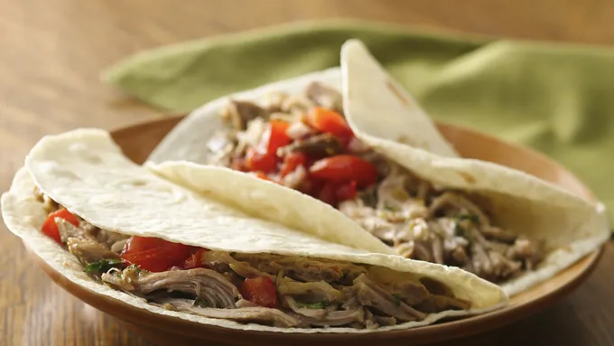 Pork roast slow cooked with Oriental flavors and spooned onto a Mexican staple gives you this mouth-watering delicious meal.