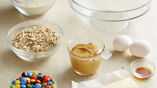 Step1Heat oven to 350°F. In large bowl, stir cookie mix, oats, peanut butter, softened butter, vanilla and eggs until soft dough forms. Stir in candies.