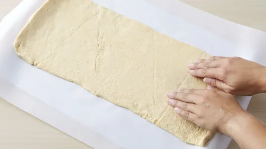 Meanwhile, unroll dough into 1 long rectangle onto cookie sheet. Press into 16x8-inch rectangle, firmly pressing perforations and seams to seal.