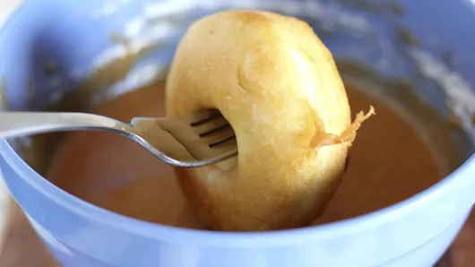 Step5Dip donuts into glaze. Return to cooling rack. Let glaze dry 2 to 3 minutes before serving.
