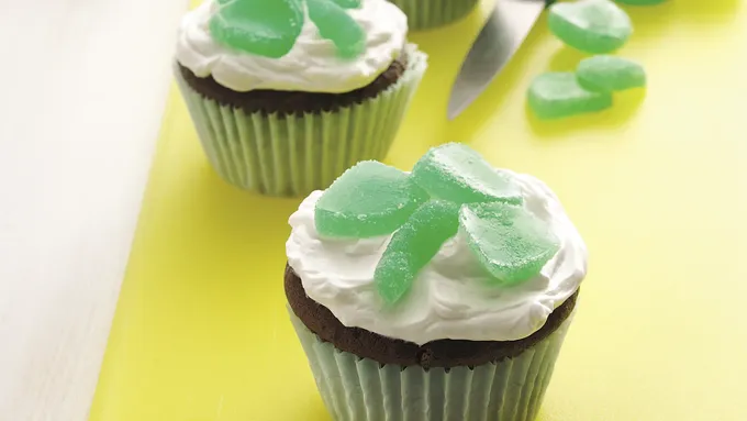 If you're a fan of the minty, chocolately flavors of grasshopper cake, you'll love these adorable Grasshopper Cupcakes! Rich devil's food cupcakes are topped with minty frosting and crème de menthe chocolate candies to create an ultra-dreamy treat that can't be beat for St. Patrick's Day celebrations.