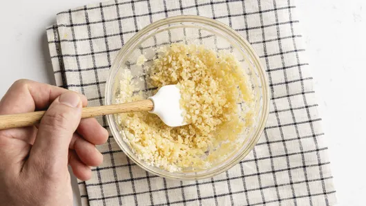 Melt butter with garlic powder, stir in Progresso™ panko bread crumbs, and transfer to a pie plate or shallow dish.