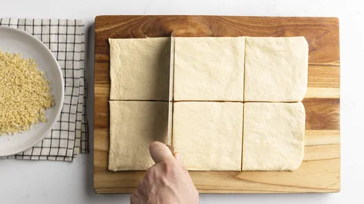 Roll out the Pillsbury™ Original Crescent Dough Sheet, and cut it into squares.