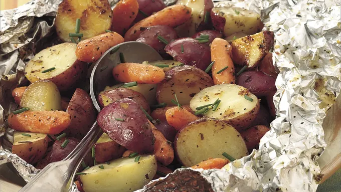 Make cheesy French fries on the grill and serve up a delicious side at your next family cookout. Prep these foil-pack cheesy fries in just 10 minutes, then top with American cheese slices and crispy bacon for a hearty dish to pair with your favorite grill-out mains. We guarantee you'll want to make grilled French fries at every BBQ from here on out.