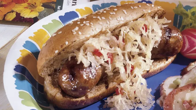Step2When ready to grill, cut franks in half lengthwise, cutting almost but not completely through. Open franks and place, cut side down, on gas grill over medium heat or on charcoal grill 4 to 6 inches from medium coals. Cook 5 to 10 minutes or until thoroughly heated, turning once. To toast buns, place cut sides down on grill during last 1 to 2 minutes of cooking time.