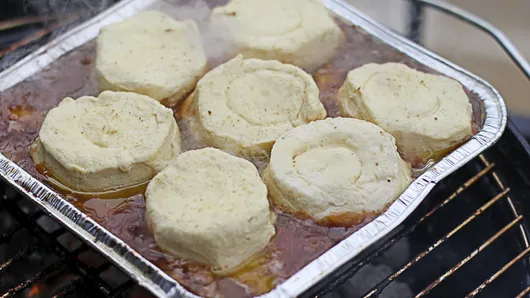 Step6Cover grill; cook 5 to 10 minutes or until biscuits are golden brown. Carefully remove pan from grill. Cool at least 20 minutes before serving.