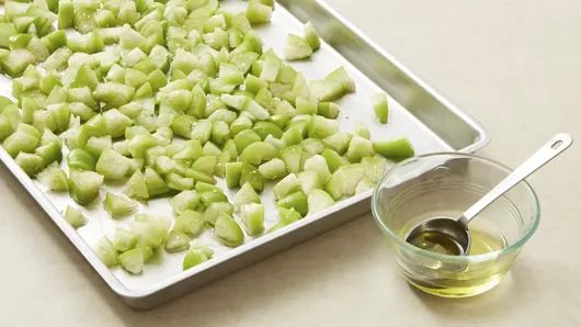 Step2Heat oven to 400°F. Brush large cookie sheet with 1 tablespoon of the oil.