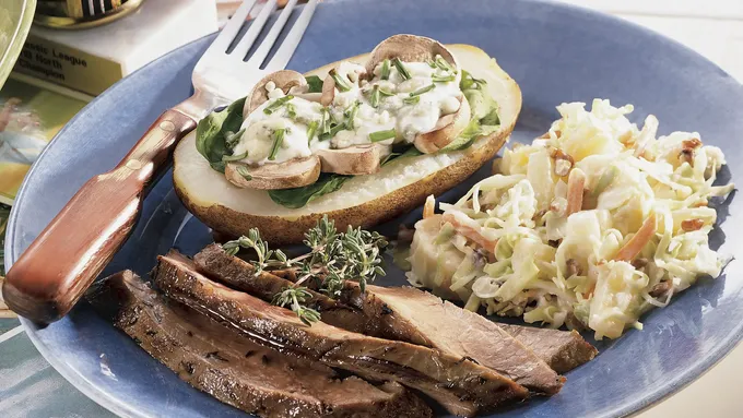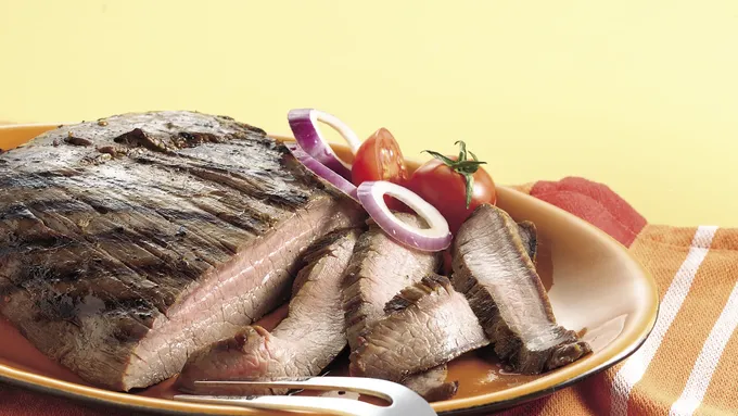 Tender-tangy round beef steak marinated in seasoned red wine before it's grilled makes a mouth-watering meal!