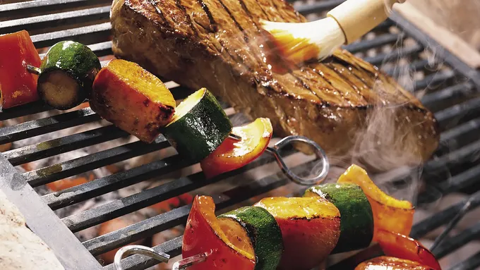 Step1Heat grill. Brush both sides of steak with 2 tablespoons of the teriyaki sauce; sprinkle both sides with pepper.