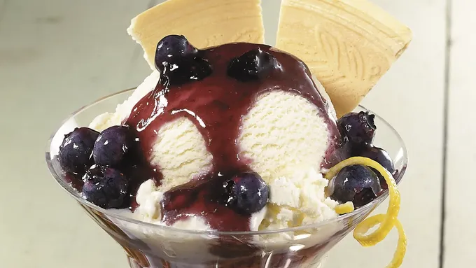 Step5To serve, place heart cups in shallow dessert plates or bowls. Fill each with 1/2 cup ice cream. Drizzle each with 2 tablespoons strawberry topping. Top each with 3 heart cutouts.