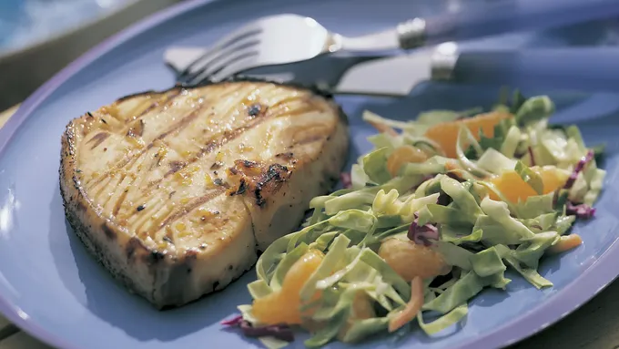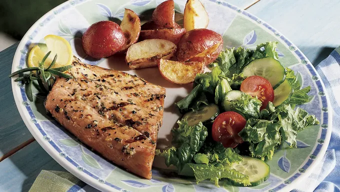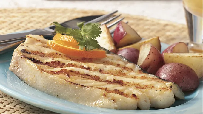 Herbs provide an aromatic flavor to grilled halibut - wonderful seafood dinner ready in 30 minutes.