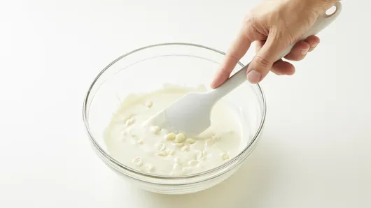 Step2In medium microwavable bowl, microwave white vanilla baking chips uncovered on High 45 seconds; stir. If needed, microwave in additional 15-second intervals, stirring well after each interval, just until chips are melted and mixture is smooth.