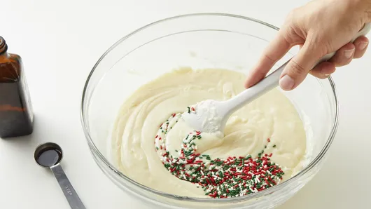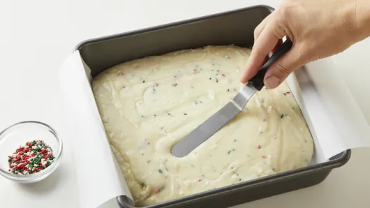 Step3Immediately pour into pan; spread evenly with an offset metal spatula. Top with remaining 1 tablespoon sprinkles.
