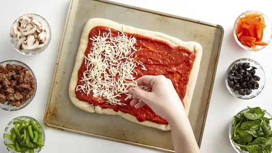 Don't spend your hard-earned dough (get it?) on pricey delivery charges. All you need to have an amazing pizza night of your own is to keep refrigerated pizza dough and toppings on hand in your refrigerator. In less time than it takes to have a pizza delivered to your house, you could be enjoying a personalized pie just the way you like it, right from your very own oven.
