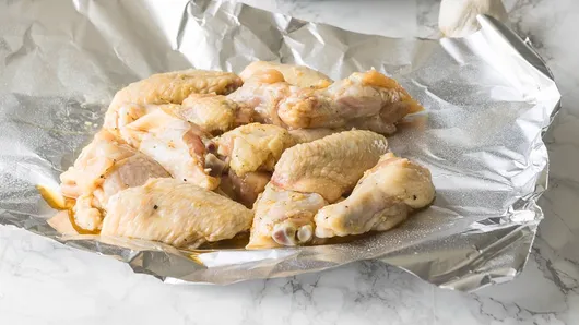Step3Place chicken on foil. Bring up 2 sides of foil so edges meet. Seal edges, making tight 1/2-inch fold; fold again, allowing space for heat circulation and expansion. Fold other sides to seal.