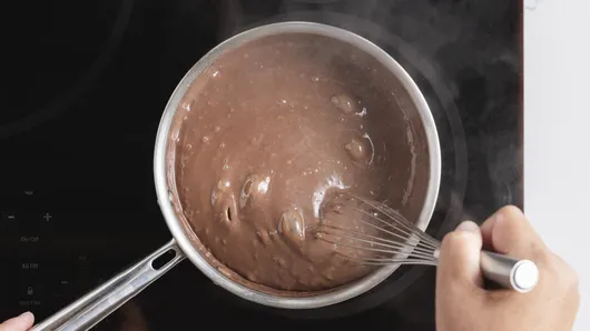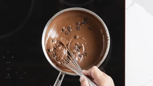 Whip up easy chocolate pudding on the stove using boxed pudding mix. Then, add chocolate chips for extra-rich flavor. Once slightly cooled, spread the pudding over the fudge layer, and return the pie to the fridge to chill until firm.
