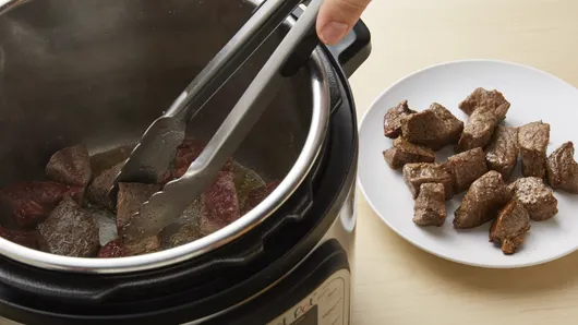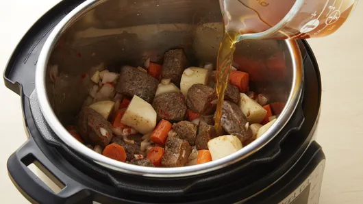 var configuration = {"title":"Instant Pot® Beef Stew","introduction":"It doesn’t get much cozier than this! Classic stew ingredients like beef, carrots and potatoes cooked in beef broth make for an easy, filling dish that’s done in less than 2 hours, thanks to your multicooker.","servingSize":"1 Serving","image":{"small":{"media":"(min-width: 0px)","src":"https://mojo.generalmills.com/api/public/content/_BM-JW9RaEu96qafeeZcxg_webp_base.webp?v=fb6beabd\u0026t=e724eca7b3c24a8aaa6e089ed9e611fd"},"medium":{"media":"(min-width: 500px)","src":"https://mojo.generalmills.com/api/public/content/_BM-JW9RaEu96qafeeZcxg_webp_base.webp?v=fb6beabd\u0026t=191ddcab8d1c415fa10fa00a14351227"},"large":{"media":"(min-width: 767px)","src":"https://mojo.generalmills.com/api/public/content/_BM-JW9RaEu96qafeeZcxg_webp_base.webp?v=fb6beabd\u0026t=191ddcab8d1c415fa10fa00a14351227"},"alt":"Instant Pot® Beef Stew"},"contributor":{"label":"By","name":"Pillsbury Kitchens","profileUrl":"/about-us","displayDate":{"label":"Updated","date":"Dec 20, 2019"}},"ingredientGroups":[{"ingredients":[{"quantity":"2","description":"lb beef stew meat "},{"quantity":"2","description":"teaspoons salt "},{"quantity":"1","description":"teaspoon pepper "},{"quantity":"2","description":"tablespoons butter "},{"quantity":"1","description":"tablespoon Muir Glen® organic tomato paste (from 6-oz can) "},{"quantity":"2","description":"cups chopped onions "},{"quantity":"2","description":"cups 1-inch diced peeled carrots "},{"quantity":"2","description":"cups 1-inch diced peeled russet potatoes "},{"quantity":"1","description":"cup Progresso® beef flavored broth (from 32-oz carton) "},{"quantity":"2","description":"tablespoons cornstarch "},{"quantity":"2","description":"tablespoons water "}]}],"steps":[{"description":"In large bowl, toss beef with salt and pepper. Spray 6-quart Instant Pot® insert with cooking spray. Select SAUTE; adjust to normal. Melt butter in insert. Add beef in 2 batches, and cook 2 to 4 minutes on first side until browned. Turn and cook 2 to 4 minutes longer on second side or until browned. Select CANCEL.","stepShotImageUrl":"//mojo.generalmills.com/api/public/content/bBMjJuLCNkCHyf4orpfgzQ_webp_base.webp?v=3bc10a3e\u0026t=51a43a57af4046789e5a7f20567b1195"},{"description":"Return beef to insert. Stir in tomato paste. Stir in onions, carrots and potatoes. Stir in broth. Secure lid; set pressure valve to SEALING. Select MANUAL; cook on high pressure 45 minutes. Select CANCEL. Set pressure valve to VENTING to quick-release pressure.","stepShotImageUrl":"//mojo.generalmills.com/api/public/content/nsbvYGDvDUeCCWtPUpbLGA_webp_base.webp?v=12679a6b\u0026t=51a43a57af4046789e5a7f20567b1195"},{"description":"In small bowl, beat cornstarch and water with whisk. Select SAUTE, and adjust to normal; heat liquid to simmering. Gently stir in cornstarch mixture; cook 30 to 60 seconds, stirring frequently, until thickened. Select CANCEL.","stepShotImageUrl":"//mojo.generalmills.com/api/public/content/FcKxoGKA3k2aMig0ZWTGGw_webp_base.webp?v=e9c6ae1d\u0026t=51a43a57af4046789e5a7f20567b1195"}],"tips":[{"title":"","description":"Instead of 2 lb of stew meat, you can purchase a 2 1/2- to 3-lb beef chuck roast, and cut it yourself. Trim off the fat, and cut into 2-inch pieces. You should end up with about 2 lb meat.","category":"Variation","tipShots":[]},{"title":"","description":"Top with chopped fresh parsley for a pretty, fresh garnish.","category":"Presentation/Garnish","tipShots":[]},{"title":"","description":"Kitchen Tested - 11/2017.","category":"Kitchen Tested","tipShots":[]},{"title":"","description":"Instead of 2 lb of stew meat, you can purchase a 2 1/2- to 3-lb beef chuck roast and cut it yourself. Trim off the fat and cut into 2-inch pieces.","category":"Recipe/Ingredient Facts","tipShots":[]},{"title":"","description":"For a pretty, fresh garnish, top with chopped fresh parsley.","category":"Recipe/Ingredient Facts","tipShots":[]},{"title":"","description":"Adding more cornstarch will thicken your stew even more. Just be sure to mix with water first and incorporate slowly.","category":"Recipe/Ingredient Facts","tipShots":[]}],"kitchenTips":[{"title":"","description":"Instead of 2 lb of stew meat, you can purchase a 2 1/2- to 3-lb beef chuck roast, and cut it yourself. Trim off the fat, and cut into 2-inch pieces. You should end up with about 2 lb meat.","category":"Variation","tipShots":[]},{"title":"","description":"Top with chopped fresh parsley for a pretty, fresh garnish.","category":"Presentation/Garnish","tipShots":[]},{"title":"","description":"Instead of 2 lb of stew meat, you can purchase a 2 1/2- to 3-lb beef chuck roast and cut it yourself. Trim off the fat and cut into 2-inch pieces.","category":"Recipe/Ingredient Facts","tipShots":[]},{"title":"","description":"For a pretty, fresh garnish, top with chopped fresh parsley.","category":"Recipe/Ingredient Facts","tipShots":[]},{"title":"","description":"Adding more cornstarch will thicken your stew even more. Just be sure to mix with water first and incorporate slowly.","category":"Recipe/Ingredient Facts","tipShots":[]}],"additionalContent":[],"faq":[],"tipCategories":[{"categoryName":"Kitchen Tested","heading":"More About This Recipe","cssClass":"recipePartStory","expandOnInit":false,"expandText":"More +","collapseText":"Less -","expandEventName":"","collapseEventName":"","image":"","tips":[{"title":"","description":"Kitchen Tested - 11/2017.","category":"Kitchen Tested","tipShots":[]}],"isExpandable":false}],"nutritionInfo":{"configuration":{"showAsTable":false,"noNutritionInformationAvailableMessage":"No nutrition information available for this recipe","poweredByText":"\u003cp\u003eNutrition information for this recipe is estimated using a leading nutrition calculation application, but is an estimate only. Actual nutrition values will vary based on the exact ingredients or brands you may use.\u003c/p\u003e\n\u003ca href=\u0022http://developer.edamam.com\u0022