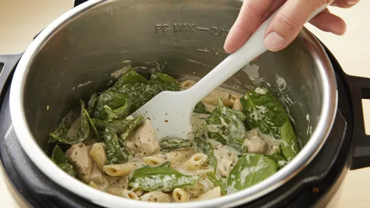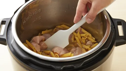 Stir in chicken and pasta. Secure lid; set pressure valve to SEALING. Select MANUAL; cook on high pressure 7 minutes. Select CANCEL. Set pressure valve to VENTING to quick-release pressure.