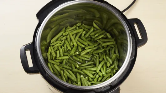 Step1In 6-quart Instant Pot® insert, add chicken broth and green beans. Secure lid; set pressure valve to SEALING. Select MANUAL; cook on high pressure 1 minute. Select CANCEL. Set pressure valve to VENTING to quick-release pressure.