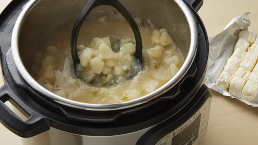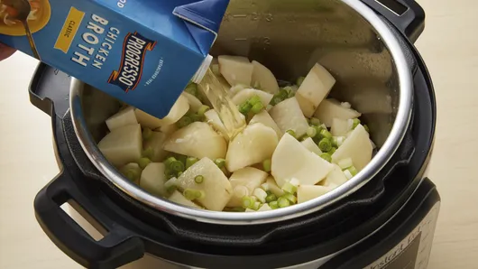 var configuration = {"title":"Instant Pot® Potato Soup","introduction":"This loaded baked potato soup is perfect for a cold winter’s day when you don’t feel like slaving over the stove—because the Instant Pot® does the work for you! Bacon, cream cheese, green onions and cheddar already pair perfectly with baked potatoes, but in soup form it all seems to taste even better.","servingSize":"1 Serving","image":{"small":{"media":"(min-width: 0px)","src":"https://mojo.generalmills.com/api/public/content/IN9odDkVTUuXetdM7ZOFHg_webp_base.webp?v=916f3883\u0026t=e724eca7b3c24a8aaa6e089ed9e611fd"},"medium":{"media":"(min-width: 500px)","src":"https://mojo.generalmills.com/api/public/content/IN9odDkVTUuXetdM7ZOFHg_webp_base.webp?v=916f3883\u0026t=191ddcab8d1c415fa10fa00a14351227"},"large":{"media":"(min-width: 767px)","src":"https://mojo.generalmills.com/api/public/content/IN9odDkVTUuXetdM7ZOFHg_webp_base.webp?v=916f3883\u0026t=191ddcab8d1c415fa10fa00a14351227"},"alt":"Instant Pot® Potato Soup"},"contributor":{"label":"By","name":"Pillsbury Kitchens","profileUrl":"/about-us","displayDate":{"label":"Updated","date":"Oct 24, 2024"}},"ingredientGroups":[{"ingredients":[{"quantity":"4","description":"slices bacon, chopped "},{"quantity":"4","description":"lb russet potatoes, peeled and cut in 1-inch pieces "},{"quantity":"8","description":"green onions, thinly sliced, white and green parts separated "},{"quantity":"1/2","description":"teaspoon salt "},{"quantity":"1","description":"carton (32 oz) Progresso® chicken broth "},{"quantity":"1","description":"package (8 oz) cream cheese, cubed, softened "},{"quantity":"1","description":"cup shredded Cheddar cheese (4 oz) "}]}],"steps":[{"description":"Spray 6-quart Instant Pot® insert with cooking spray. Select SAUTE; adjust to normal. Add bacon to insert; cook 7 to 9 minutes, stirring occasionally, until crisp. Select CANCEL. Using slotted spoon, transfer bacon to paper towel-lined plate.","stepShotImageUrl":"//mojo.generalmills.com/api/public/content/eBUo91qUZEecTXb251GQAQ_webp_base.webp?v=b6819fe1\u0026t=51a43a57af4046789e5a7f20567b1195"},{"description":"Stir potatoes, green onion whites and salt into bacon drippings in insert. Stir in broth. Secure lid; set pressure valve to SEALING. Select MANUAL; cook on high pressure 6 minutes. Select CANCEL. Set pressure valve to VENTING to quick-release pressure.","stepShotImageUrl":"//mojo.generalmills.com/api/public/content/qV6_DFtFFkOE4cCAvnJWJg_webp_base.webp?v=3fd2a932\u0026t=51a43a57af4046789e5a7f20567b1195"},{"description":"Mash potatoes in pot; stir in cream cheese until combined.","stepShotImageUrl":"//mojo.generalmills.com/api/public/content/b1sN8NuuKUq2GO_is9f51A_webp_base.webp?v=39127d13\u0026t=51a43a57af4046789e5a7f20567b1195"},{"description":"Spoon into bowls. Top with Cheddar cheese, bacon and green onion greens."}],"tips":[{"title":"","description":"Want your soup even more loaded? Top with diced ham and sour cream.","category":"Serving Suggestions/Menu","tipShots":[]},{"title":"","description":"Kitchen Tested - 11/2017.","category":"Kitchen Tested","tipShots":[]},{"title":"","description":"Serve with freshly baked Pillsbury™ crescent rolls for a truly comforting dinner.","category":"Serving Suggestions/Menu","tipShots":[]},{"title":"","description":"Add even more hearty goodness to this soup by topping with diced ham and a dollop of sour cream.","category":"Recipe/Ingredient Facts","tipShots":[]},{"title":"","description":"Try using garden vegetable cream cheese for an interesting twist of veggie flavor.","category":"Variation","tipShots":[]}],"kitchenTips":[{"title":"","description":"Want your soup even more loaded? Top with diced ham and sour cream.","category":"Serving Suggestions/Menu","tipShots":[]},{"title":"","description":"Serve with freshly baked Pillsbury™ crescent rolls for a truly comforting dinner.","category":"Serving Suggestions/Menu","tipShots":[]},{"title":"","description":"Add even more hearty goodness to this soup by topping with diced ham and a dollop of sour cream.","category":"Recipe/Ingredient Facts","tipShots":[]},{"title":"","description":"Try using garden vegetable cream cheese for an interesting twist of veggie flavor.","category":"Variation","tipShots":[]}],"additionalContent":[],"faq":[],"tipCategories":[{"categoryName":"Kitchen Tested","heading":"More About This Recipe","cssClass":"recipePartStory","expandOnInit":false,"expandText":"More +","collapseText":"Less -","expandEventName":"","collapseEventName":"","image":"","tips":[{"title":"","description":"Kitchen Tested - 11/2017.","category":"Kitchen Tested","tipShots":[]}],"isExpandable":false}],"nutritionInfo":{"configuration":{"showAsTable":false,"noNutritionInformationAvailableMessage":"No nutrition information available for this recipe","poweredByText":"\u003cp\u003eNutrition information for this recipe is estimated using a leading nutrition calculation application, but is an estimate only. Actual nutrition values will vary based on the exact ingredients or brands you may use.\u003c/p\u003e\n\u003ca href=\u0022http://developer.edamam.com\u0022\u003ePowered By \u003cimg src=\u0022-/media/C4F33FD467AB4A3AB59AAC4F6306AB04.ashx\u0022 alt=\u0022Edamam\u0022 /\u003e\u003c/a\u003e","nutritionChartTitle":"Nutrition Facts","nutritionInformationLabel":"Nutrition","servingSizeText":"Serving Size:","dailyValuesDisclaimer":"*Percent Daily Values are based on a 2,000 calorie diet.","percentDailyValueText":"% Daily Value","percentDailyValueFooterTitleText":"% Daily Value*:","exchangeInformationTitleText":"Exchanges:","nutritionFactsExpandText":"More Nutrition","nutritionFactsCollapseText":"Less Nutrition"},"facts":{"carbohydrateChoice":{"amountPercent":"","amountUnits":"3","title":"Carbohydrate Choice"},"vitaminA":{"amountPercent":"15%","amountUnits":"15%","title":"Vitamin A"},"vitaminC":{"amountPercent":"20%","amountUnits":"20%","title":"Vitamin C"},"calcium":{"amountPercent":"15%","amountUnits":"15%","title":"Calci