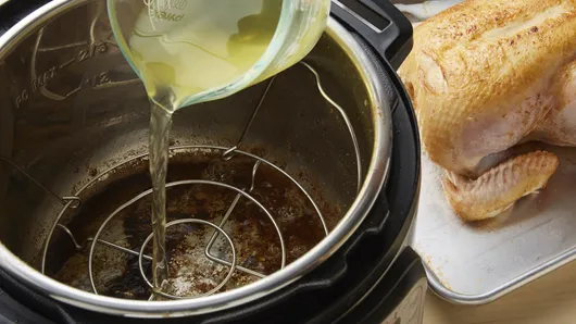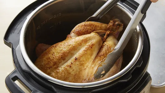 var configuration = {"title":"Instant Pot® Whole Roast Chicken","introduction":"This Instant Pot® chicken is the easy-yet-fancy meal main you never knew you needed—no oven required. Bonus: The chicken broth, salt, cornstarch and water yield a delicious gravy you can serve alongside this Instant Pot® whole chicken for a main course that will get two thumbs up all around the dinner table.","servingSize":"1 Serving","image":{"small":{"media":"(min-width: 0px)","src":"https://mojo.generalmills.com/api/public/content/Mr2YbmMeV0WT25nK-B_JJA_webp_base.webp?v=1ed959bc\u0026t=e724eca7b3c24a8aaa6e089ed9e611fd"},"medium":{"media":"(min-width: 500px)","src":"https://mojo.generalmills.com/api/public/content/Mr2YbmMeV0WT25nK-B_JJA_webp_base.webp?v=1ed959bc\u0026t=191ddcab8d1c415fa10fa00a14351227"},"large":{"media":"(min-width: 767px)","src":"https://mojo.generalmills.com/api/public/content/Mr2YbmMeV0WT25nK-B_JJA_webp_base.webp?v=1ed959bc\u0026t=191ddcab8d1c415fa10fa00a14351227"},"alt":"Instant Pot® Whole Roast Chicken"},"contributor":{"label":"By","name":"Pillsbury Kitchens","profileUrl":"/about-us","displayDate":{"label":"Updated","date":"Dec 20, 2019"}},"ingredientGroups":[{"ingredients":[{"quantity":"2","description":"tablespoons butter "},{"quantity":"3","description":"to 4 lb whole chicken, giblets removed "},{"quantity":"2","description":"teaspoons seasoned salt "},{"quantity":"1","description":"cup Progresso™ unsalted chicken broth (from 32-oz carton) "},{"quantity":"3","description":"tablespoons cornstarch"},{"quantity":"3","description":"tablespoons water"}]}],"steps":[{"description":"On 6-quart Instant Pot®, select SAUTE; adjust to normal. Melt butter in insert. Rub chicken all over with seasoned salt, and place in insert, breast side down; sear 4 to 6 minutes or until browned. Turn and sear on back side 2 to 4 minutes longer; using tongs, transfer to plate. Select CANCEL.","stepShotImageUrl":"//mojo.generalmills.com/api/public/content/6-RDrK4hSECysYel_kaQXg_webp_base.webp?v=94cf89bc\u0026t=51a43a57af4046789e5a7f20567b1195"},{"description":"Carefully place rack in insert. Add broth. Place chicken breast side up on rack. Secure lid; set pressure valve to SEALING. Select MANUAL; cook on high pressure 20 minutes. Select CANCEL. Keep pressure valve in SEALING position to release pressure naturally. Internal temperature in thigh should be at least 165°F using instant-read thermometer. If chicken is not done, select MANUAL and cook on high pressure 2 to 5 minutes longer. Select CANCEL. Keep pressure valve in SEALING position to release pressure naturally.","stepShotImageUrl":"//mojo.generalmills.com/api/public/content/5GObiOmDcEePnygp-UFQYA_webp_base.webp?v=95377a9d\u0026t=51a43a57af4046789e5a7f20567b1195"},{"description":"When cool enough to handle, carefully transfer chicken to cutting board, and remove rack.","stepShotImageUrl":"//mojo.generalmills.com/api/public/content/4hB3_wGbEE-fFQ6neNeuag_webp_base.webp?v=ca99fab0\u0026t=51a43a57af4046789e5a7f20567b1195"},{"description":"Select SAUTE, and adjust to normal; heat liquid to simmering. In small bowl, beat cornstarch and water with whisk; stir into liquid and cook 1 to 2 minutes, stirring constantly, until thickened.","stepShotImageUrl":"//mojo.generalmills.com/api/public/content/IH_hum_ZFEKt8DMRiavjKQ_webp_base.webp?v=5b44d5fb\u0026t=51a43a57af4046789e5a7f20567b1195"},{"description":"Carve chicken; serve with gravy.","stepShotImageUrl":"//mojo.generalmills.com/api/public/content/1sdaMUcjRUCBi3lZDfVmLw_webp_base.webp?v=2423edde\u0026t=51a43a57af4046789e5a7f20567b1195"}],"tips":[{"title":"","description":"For the prettiest bird, tie the legs together with cooking twine before cooking.","category":"Recipe/Ingredient Facts","tipShots":[]},{"title":"","description":"Kitchen Tested - 11/2017.","category":"Kitchen Tested","tipShots":[]},{"title":"","description":"For a uniform-looking bird, tie the legs together with cooking twine before cooking.","category":"Techniques","tipShots":[]},{"title":"","description":"To easily lift and turn a whole chicken, tuck one side of a pair of tongs inside the cavity of the bird, and gently press the other side against the outside to lift from inside.","category":"Techniques","tipShots":[]},{"title":"","description":"When releasing pressure naturally, it’s always a good idea to set the pressure valve to VENTING after the float valve drops down, just to be sure all of the pressure has been released.","category":"Techniques","tipShots":[]},{"title":"","description":"Larger birds may require a slightly longer cooking time.","category":"Recipe/Ingredient Facts","tipShots":[]},{"title":"","description":"Add your favorite spices or herbs to your chicken broth for a more flavorful gravy.","category":"Recipe/Ingredient Facts","tipShots":[]}],"kitchenTips":[{"title":"","description":"For the prettiest bird, tie the legs together with cooking twine before cooking.","category":"Recipe/Ingredient Facts","tipShots":[]},{"title":"","description":"For a uniform-looking bird, tie the legs together with cooking twine before cooking.","category":"Techniques","tipShots":[]},{"title":"","description":"To easily lift and turn a whole chicken, tuck one side of a pair of tongs inside the cavity of the bird, and gently press the other side against the outside to lift from inside.","category":"Techniques","tipShots":[]},{"title":"","description":"When releasing pressure naturally, it’s always a good idea to set the pressure valve to VENTING after the float valve drops down, just to be sure all of the pressure has been released.","category":"Techniques","tipShots":[]},{"title":"","description":"Larger birds may require a slightly longer cooking time.","category":"Recipe/Ingredient Facts","tipShots":[]},{"title":"","description":"Add your favorite spices or herbs to your chicken broth for a more flavorful gravy.","category":"Recipe/Ingredient Facts","tipShots":[]}],"additionalContent":[],"faq":[],"tipCategories":[{"categoryName