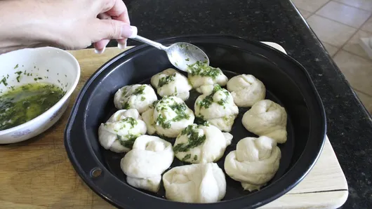 Spoon butter-herb mixture evenly over top of each knot. Sprinkle with salt and pepper.