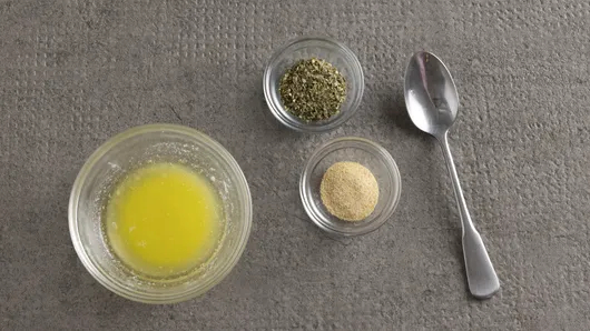 In a small bowl, combine the melted butter with Italian seasoning and garlic powder. Separate the dough into individual biscuits, place them on cookie sheet, and brush with the tops with the garlic butter. Bake biscuits as directed on can.