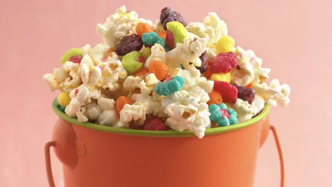 Step1Heat oven to 300°F. In large bowl, mix popcorn, crackers, pretzel sticks and bagel chips; set aside.