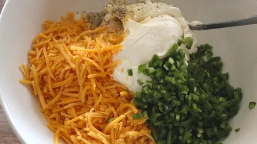 Step1Heat oven to 350°F. In medium bowl, stir together cream cheese, Cheddar cheese, chiles, salt, pepper and garlic powder until well combined. Set aside.