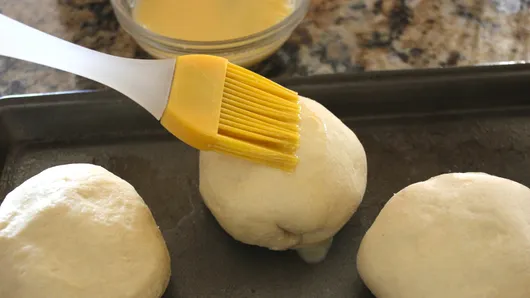 Step3To make egg wash, beat egg with splash of water. Brush tops of stuffed biscuits with some of the egg wash. Sprinkle tops with additional salt, pepper and garlic powder to taste.