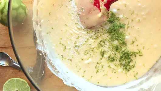 Step3Add about 2 teaspoons grated lime peel, 3 tablespoons lime juice and 1/4 teaspoon fine sea salt; stir until well combined. Pour mixture into dish. Refrigerate about 4 hours.