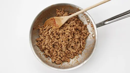 Step1In 10-inch skillet, heat oil over medium heat. Cook turkey, Italian seasoning, garlic salt and tomato paste in skillet 8 to 10 minutes, stirring frequently, until turkey is no longer pink. Remove from heat.