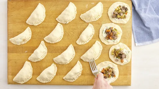 var configuration = {"title":"Leftover Pot Roast-Stuffed Biscuit Foldovers","introduction":"If you’re wondering what to do with leftover pot roast, this recipe is for you! Pot roast (and the veggies with it) get turned into these cute little hand-held appetizers or snacks. No one will ever know they’re eating leftovers!","servingSize":"1 Serving","image":{"small":{"media":"(min-width: 0px)","src":"https://mojo.generalmills.com/api/public/content/v-X2WV7TEkWPfmEnZQ8zGA_webp_base.webp?v=b59e5d2b\u0026t=e724eca7b3c24a8aaa6e089ed9e611fd"},"medium":{"media":"(min-width: 500px)","src":"https://mojo.generalmills.com/api/public/content/v-X2WV7TEkWPfmEnZQ8zGA_webp_base.webp?v=b59e5d2b\u0026t=191ddcab8d1c415fa10fa00a14351227"},"large":{"media":"(min-width: 767px)","src":"https://mojo.generalmills.com/api/public/content/v-X2WV7TEkWPfmEnZQ8zGA_webp_base.webp?v=b59e5d2b\u0026t=191ddcab8d1c415fa10fa00a14351227"},"alt":"Leftover Pot Roast-Stuffed Biscuit Foldovers"},"contributor":{"label":"By","name":"Pillsbury Kitchens","profileUrl":"/about-us","displayDate":{"label":"Updated","date":"May 24, 2024"}},"ingredientGroups":[{"ingredients":[{"quantity":"1","description":"can (16.3 oz) refrigerated Pillsbury™ Grands!™ Flaky Layers Buttermilk Biscuits (8 Count)","productLink":"/products/biscuits/grands-refrigerated-biscuits/flaky-layers-buttermilk"},{"quantity":"1/3","description":"cup cream cheese, softened"},{"quantity":"2","description":"tablespoons finely chopped green onions"},{"quantity":"1 1/2","description":"cups finely chopped refrigerated leftover beef pot roast and vegetables"},{"quantity":"1","description":"egg"},{"quantity":"1","description":"tablespoon water"},{"quantity":"1","description":"tablespoon finely chopped fresh parsley, if desired"}]}],"steps":[{"description":"Heat oven to 350°F. Line 2 large cookie sheets with cooking parchment paper, or spray with cooking spray. "},{"description":"Separate dough into 8 biscuits. Separate each biscuit into 2 layers, making a total of 16 thin biscuits; press each into 4-inch round.","stepShotImageUrl":"//mojo.generalmills.com/api/public/content/-VcfRg_Ty0aNCq9K4iUvhA_webp_base.webp?v=496ea403\u0026t=51a43a57af4046789e5a7f20567b1195"},{"description":"In small bowl, stir cream cheese and green onions until combined. Spoon 1 teaspoon cream cheese spread in center of bottom half of each biscuit; spread to within 1/2-inch of edges. ","stepShotImageUrl":"//mojo.generalmills.com/api/public/content/pm3B0PrvAkSUpnAcaabwsg_webp_base.webp?v=53cc2e0c\u0026t=51a43a57af4046789e5a7f20567b1195"},{"description":"Spoon 1 heaping tablespoonful pot roast mixture on top of each biscuit circle. Fold biscuit over filling; press edges with fork to seal. Place on cookie sheets spaced evenly apart.","stepShotImageUrl":"//mojo.generalmills.com/api/public/content/ND7hhamM7kiguJyB-VfutA_webp_base.webp?v=b29c9c40\u0026t=51a43a57af4046789e5a7f20567b1195"},{"description":"In small bowl, beat egg and water with whisk until combined. Brush egg wash over biscuits.","stepShotImageUrl":"//mojo.generalmills.com/api/public/content/od5pjfIZg0eh8TxlMTiaIQ_webp_base.webp?v=e56acaa3\u0026t=51a43a57af4046789e5a7f20567b1195"},{"description":"Bake 15 to 18 minutes or until golden brown. Sprinkle with parsley before serving."}],"tips":[{"title":"","description":"Looking for leftover pot roast recipes? This easy appetizer or snack uses leftover pot roast and veggies with cream cheese and chives in tempting, hand-held morsels.","category":"Rich Snippet","tipShots":[]},{"title":"","description":"It’s easy to press the biscuits by making a fist and pressing the dough with the side of your hand!","category":"Method Note","tipShots":[]},{"title":"","description":"Leave a little edge of your biscuits free of the cream cheese mixture, so the foldovers will stay closed when pressed together.","category":"Method Note","tipShots":[]},{"title":"","description":"It’s important to finely chop the pot roast and veggies so that you can stuff the biscuit dough. If the pot roast and veggie pieces are too large, not as much will fit inside!","category":"Method Note","tipShots":[]},{"title":"","description":"It’s always a struggle…getting your family to enjoy leftovers or wasting food. We love ways to cleverly use leftovers in new dishes that your family will dive into (and that will appeal to those leftover-challenged in your household). Try our recipes for \u003ca href=\u0022https://www.pillsbury.com/recipes/ingredient/pork/ham/leftovers\u0022\u003eham leftovers\u003c/a\u003e and \u003ca href=\u0022https://www.pillsbury.com/holidays-celebrations/thanksgiving/leftover-turkey-recipes\u0022\u003eturkey leftovers\u003c/a\u003e.","category":"Editorial","tipShots":[]},{"title":"","description":"Kitchen Tested - 10/2023.","category":"Kitchen Tested","tipShots":[]}],"kitchenTips":[{"title":"","description":"It’s easy to press the biscuits by making a fist and pressing the dough with the side of your hand!","category":"Method Note","tipShots":[]},{"title":"","description":"Leave a little edge of your biscuits free of the cream cheese mixture, so the foldovers will stay closed when pressed together.","category":"Method Note","tipShots":[]},{"title":"","description":"It’s important to finely chop the pot roast and veggies so that you can stuff the biscuit dough. If the pot roast and veggie pieces are too large, not as much will fit inside!","category":"Method Note","tipShots":[]}],"additionalContent":[{"title":"How Do I Make Pot Roast?","description":"This recipe was created for when you’re looking for leftover pot roast ideas. Make our delicious \u003ca href=\u0022https://www.pillsbury.com/recipes/beef-pot-roast-with-vegetables-and-herbs/e675f841-52fa-4163-8ecb-8b03d59d81a0\u0022\u003eBeef Pot Roast with Vegetables and Herbs \u003c/a\u003e one night and use the leftovers to make this foldover recipe another! If you are looking for a shortcut, check your local grocery store deli for a prepared pot roas