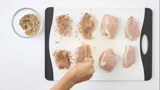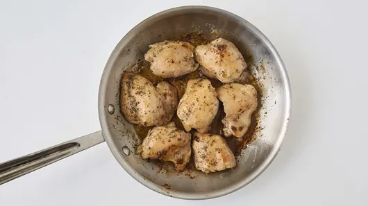 Step3Cook chicken thighs in skillet 3 to 4 minutes on each side or until golden brown and crispy.