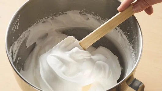 Step5In large bowl, beat egg whites, vanilla and cream of tartar on medium speed about 1 minute or until soft peaks form. Gradually add 3/4 cup sugar, 1 tablespoon at a time, beating on high speed about 5 minutes or until stiff glossy peaks form and sugar is completely dissolved.