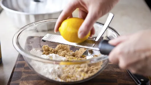 Step2In large bowl, stir together brown sugar, lemon peel and pudding mix.